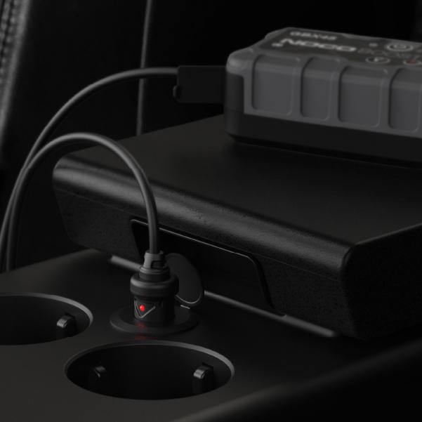 Recharge NOCO Boost X UltraSafe Lithium Jump Starters from a vehicles 12-volt power source.