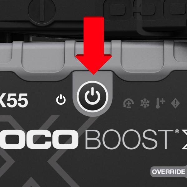 Learn how to use manual override on your NOCO Boost X GBX55 UltraSafe Lithium Jump Starter to begin jump starting a dead battery below 2-volts.
