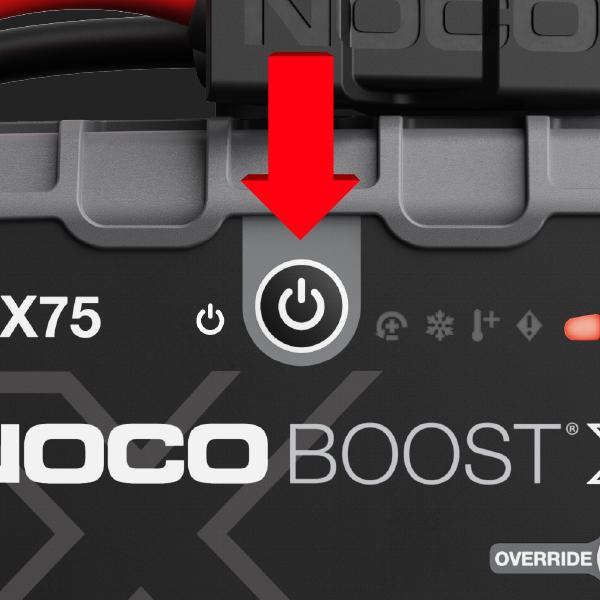 Learn how to use manual override on your NOCO Boost X GBX75 UltraSafe Lithium Jump Starter to begin jump starting a dead battery below 2-volts.
