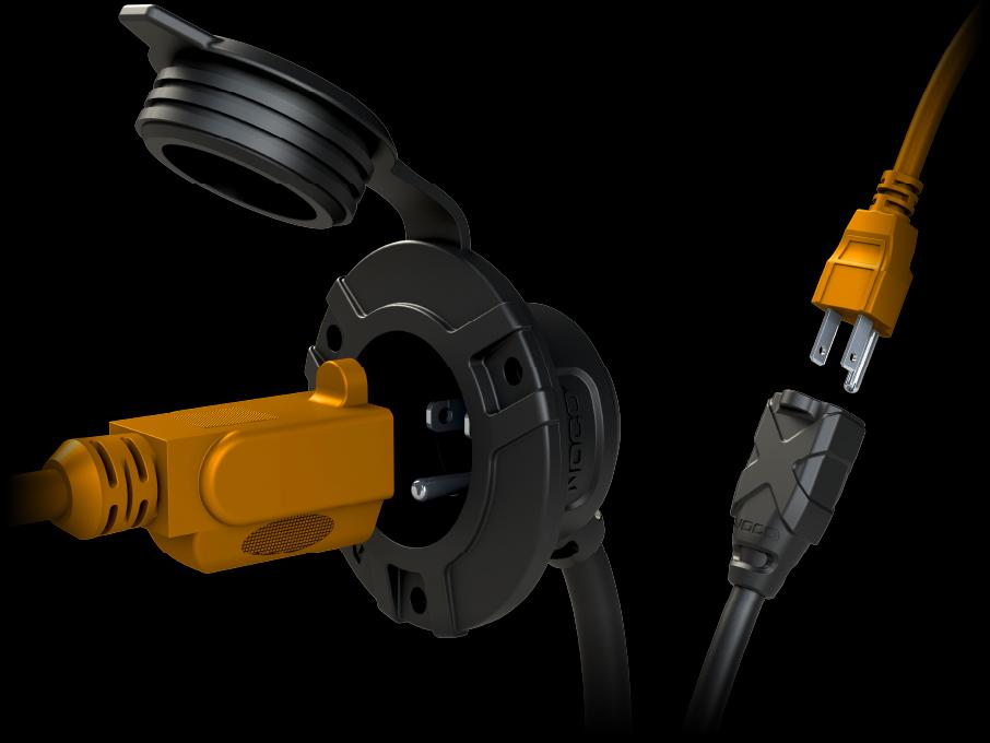 The GCP1E is an AC Port Plug with an integrated extension cable (6-feet) that offers optimal flexibility and ease of installation. It can mount to the exterior of any vehicle to make the charging port more accessible. Equipped with heavy duty 14 AWG wire to supply power to your device, GCP1E is rated at 15 amperes and 125 volts for peak performance.