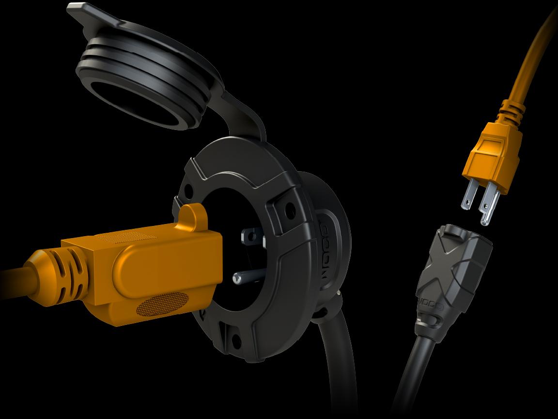 The GCP1EX is an AC Port Plug with an integrated extension cable (12-feet) that offers optimal flexibility and ease of installation. It can mount to the exterior of any vehicle to make the charging port more accessible. Equipped with heavy duty 14 AWG wire to supply power to your device, GCP1EX is rated at 15 amperes and 125 volts for peak performance.