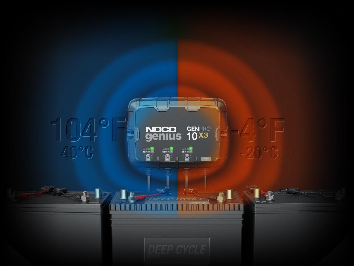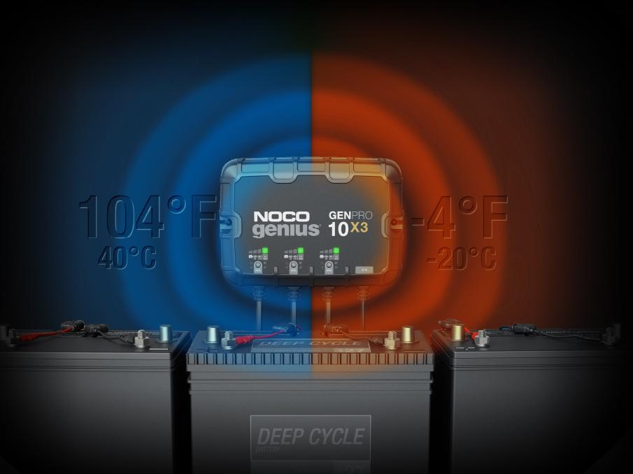 The new integrated thermal sensor automatically monitors and adjusts the charging cycle based on fluctuations of ambient temperature, limiting the chance of under-charging or over-charging, providing a more accurate and fully charged battery. Avoids under-charging in cold weather down to -4F and avoids over-charging in hot weather up to 104F.