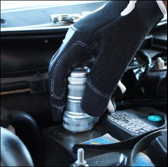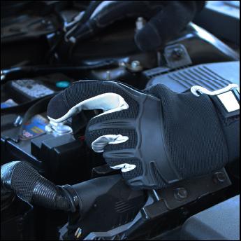 NOCO recommends the use of heavy duty mechanic's gloves when doing any work under the hood. Car batteries can be covered with traces of acidic chemicals and other harmful substances. Always protect yourself with a quality pair of gloves.