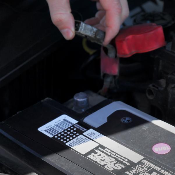 Turn off the car and disconnect the negative (-) car battery lead from the negative (-) car battery terminal; this is the black cable. When the car battery cable has been disconnected, do not let it touch anything that is grounded.