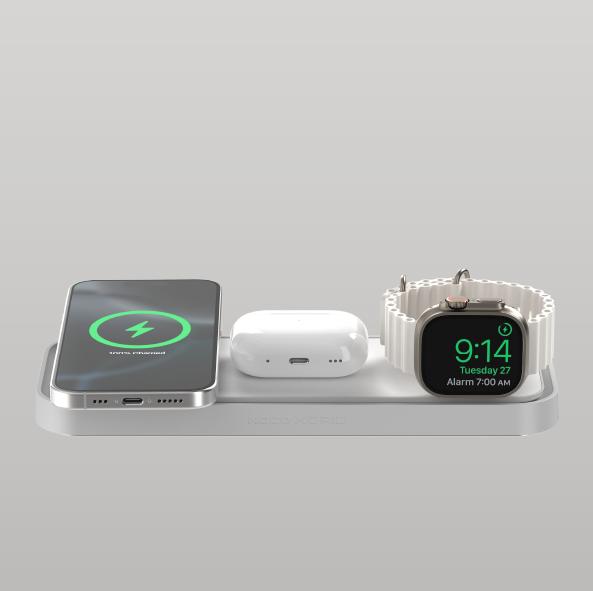A solid white light shows when a device is correctly charging. This LED only corresponds to the center charging pad.